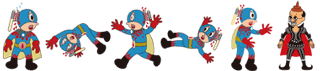 コミカルファイトを得意とするマスクマン。 ただパフォーマンスに注力しすぎるため、試合には一度も勝ったことがない。
